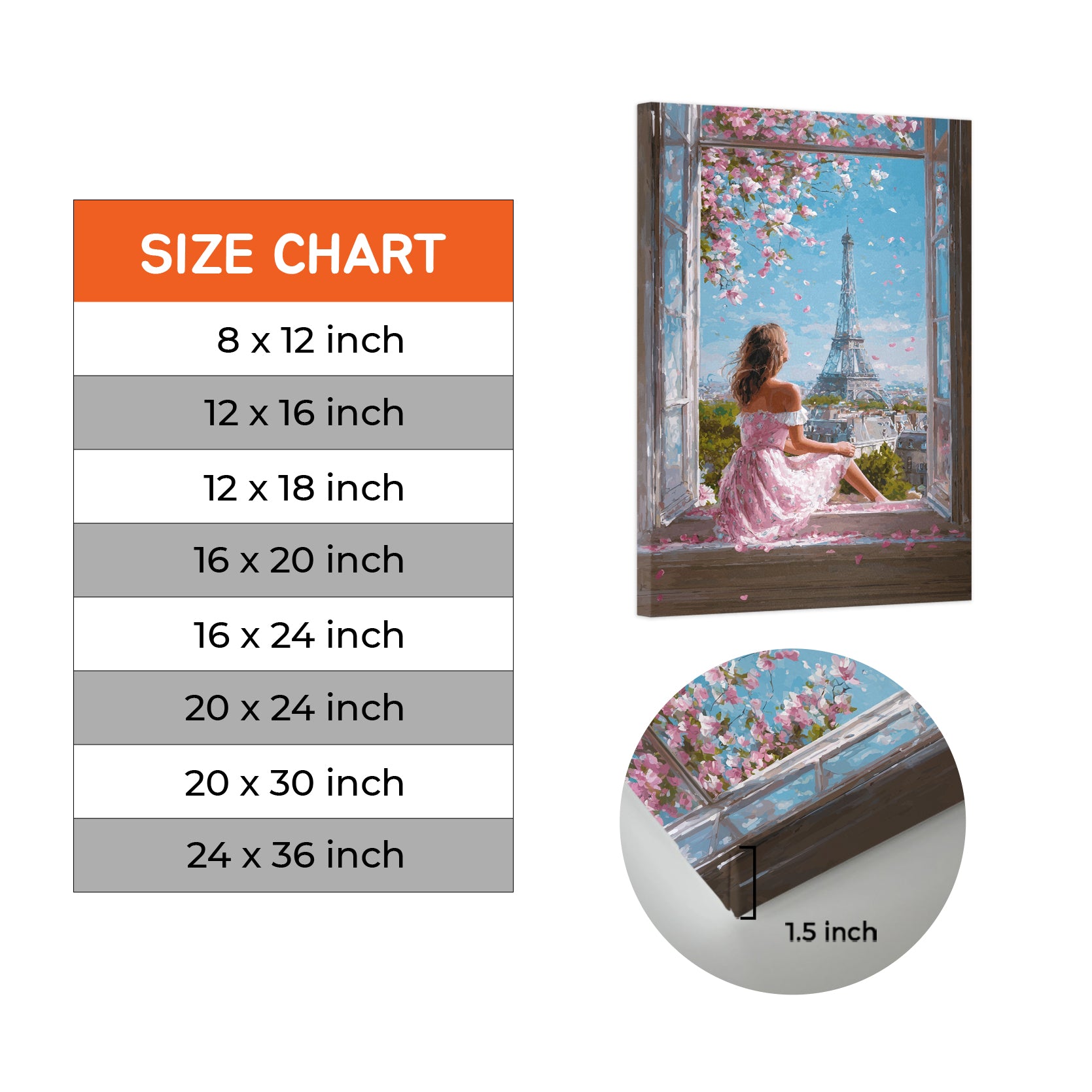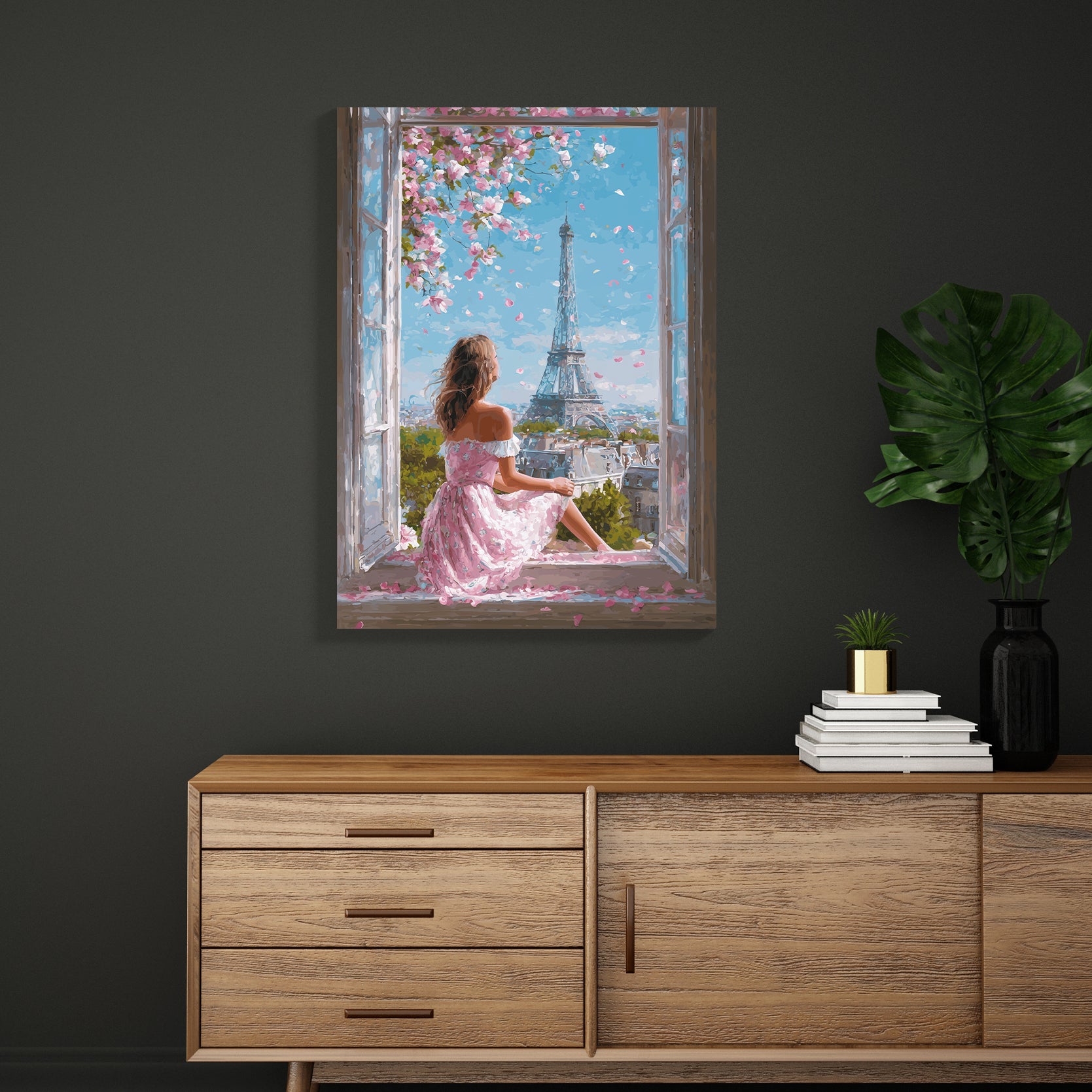 Transform your space with this enchanting canvas art featuring a romantic Parisian spring scene. The composition captures the iconic Eiffel Tower framed by delicate cherry blossoms in full bloom, creating a serene yet sophisticated aesthetic. Perfect for living rooms, bedrooms, or any area needing an elegant focal point, this piece brings timeless European charm and natural beauty into your home. The soft color palette and dreamy composition evoke tranquility while adding cultural sophistication to your décor. An ideal choice for those who appreciate classic elegance and artistic refinement.