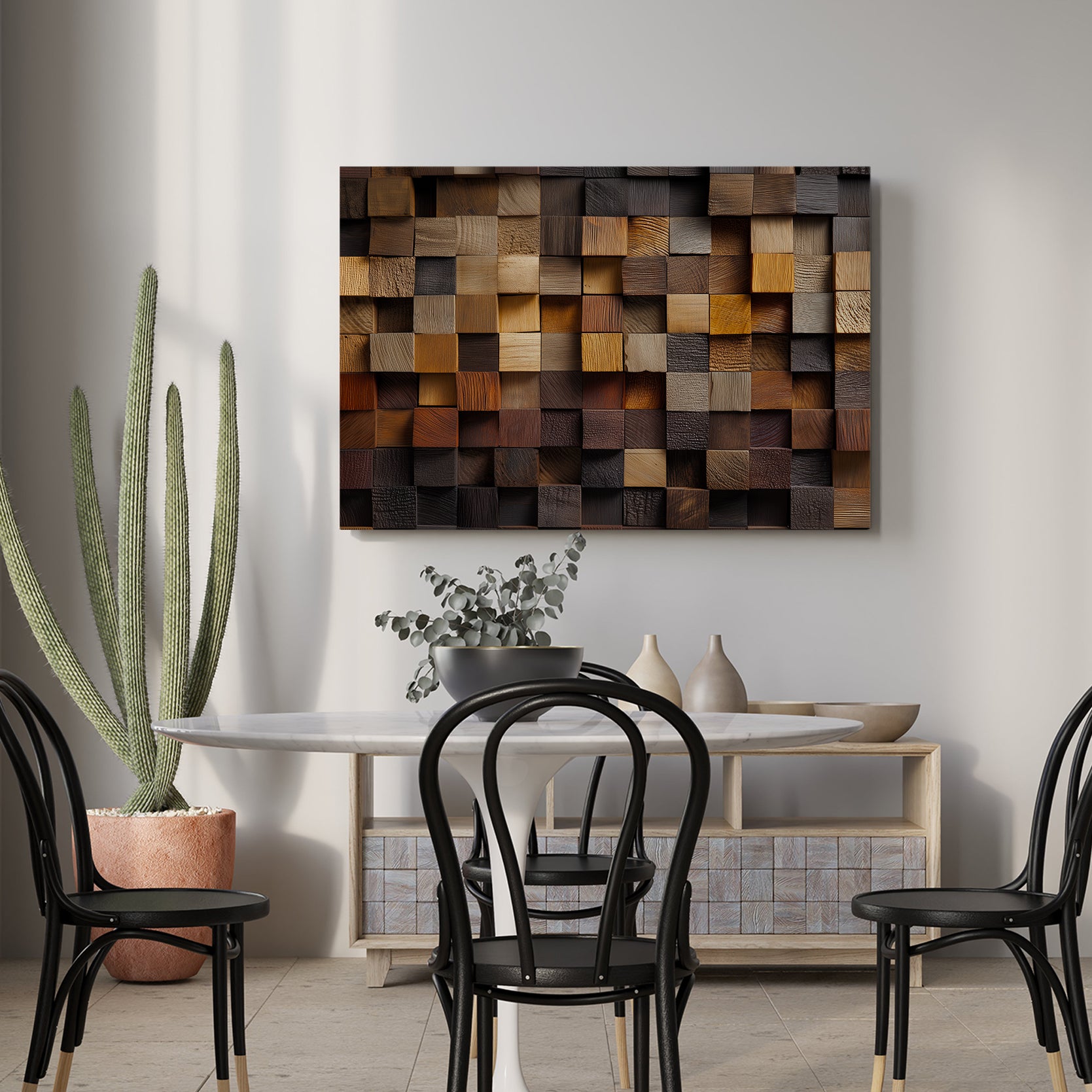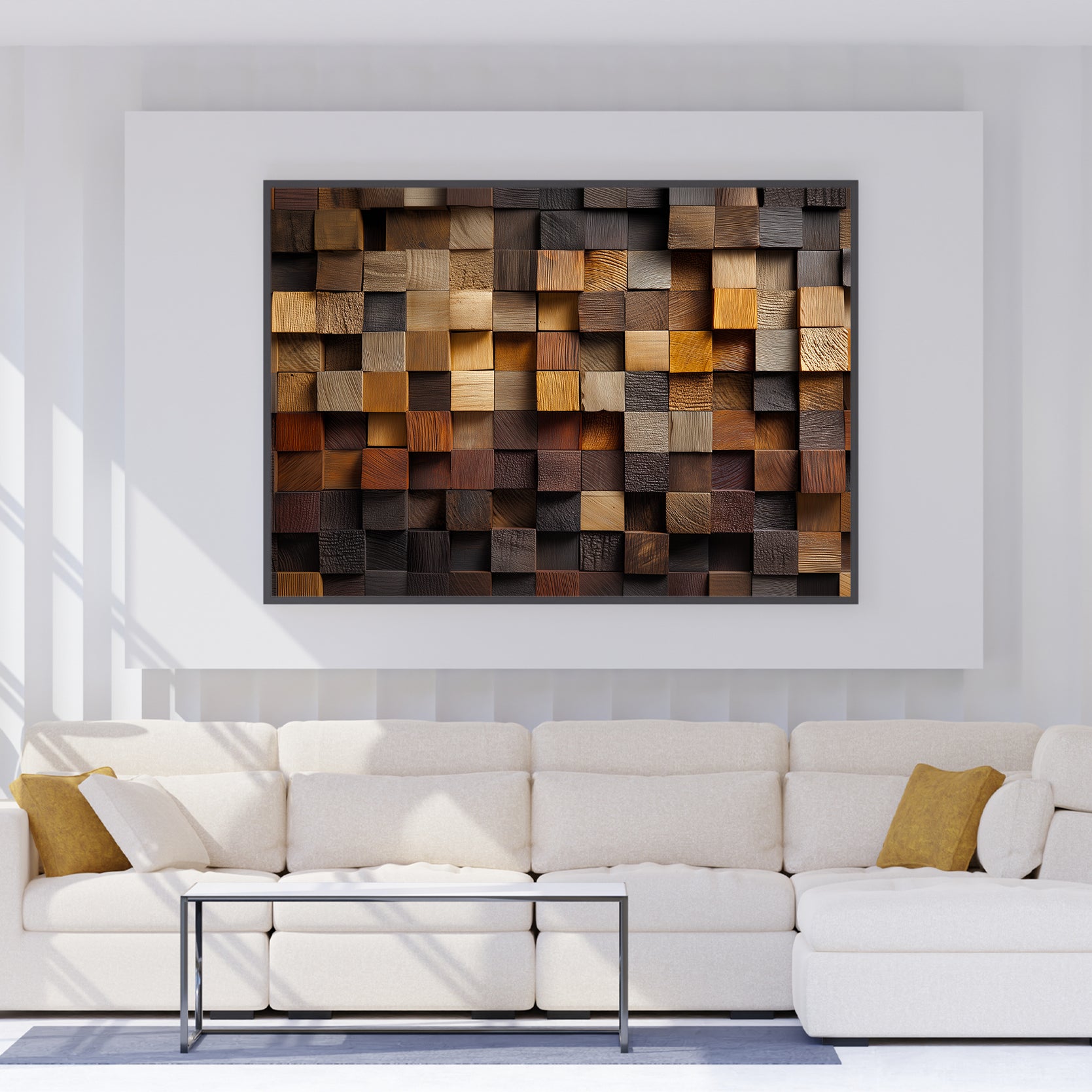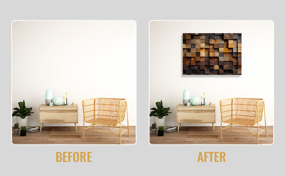 Transform your walls with this striking 3D geometric mosaic panel, expertly crafted from rustic wood in rich, multi-tone brown hues. Each piece features dimensional layering that catches light beautifully, adding depth and visual interest to any space. Perfect as a living room focal point, sofa backdrop, or bedside accent, this wall art brings warmth and contemporary sophistication to your home. The natural wood tones complement both modern and traditional interiors, making it a versatile choice for discerning decorators seeking statement-making home décor.