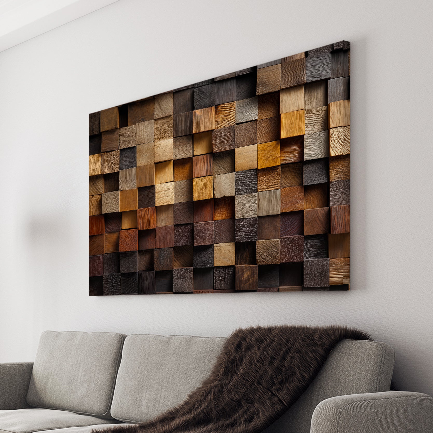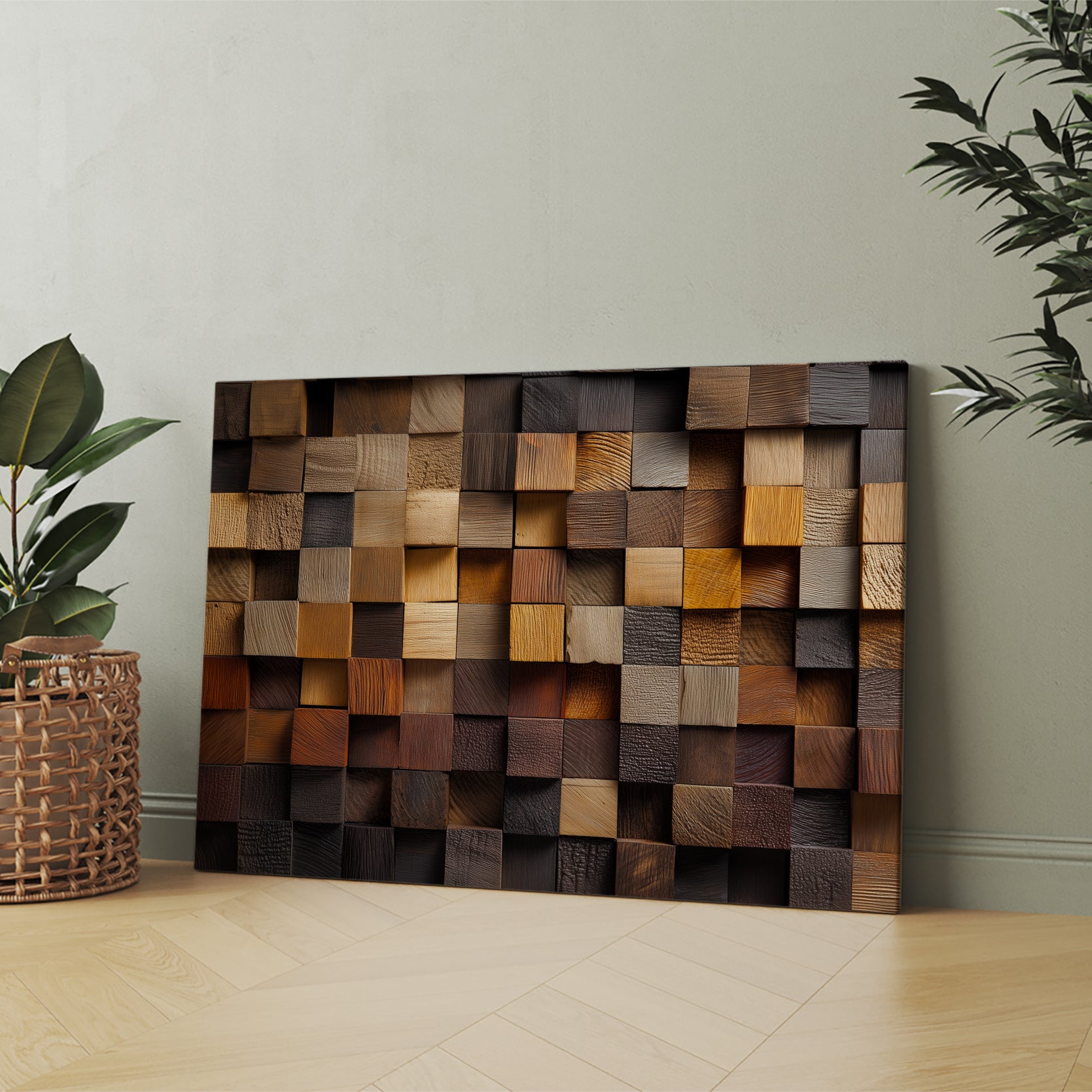 Rustic Wood Wall Art, 3D Geometric Mosaic Panel, Multi-Tone Brown - For Living Room, Sofa Backdrop, Bedside Decoration, Home Decor