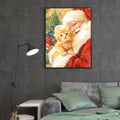 Santa and Orange Cat Holiday Theme Christmas Canvas Wall Art - For Living Room, Sofa Backdrop, Bedside Decoration, Home Decor