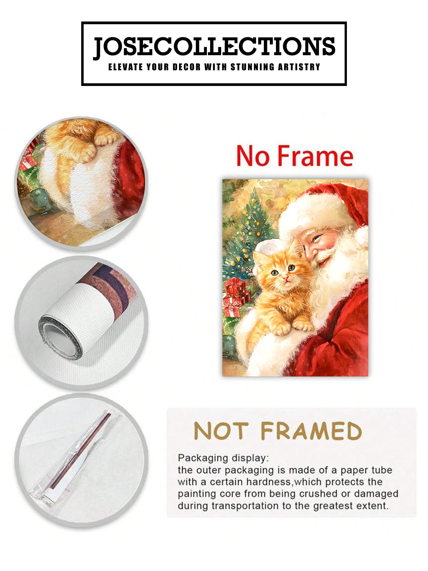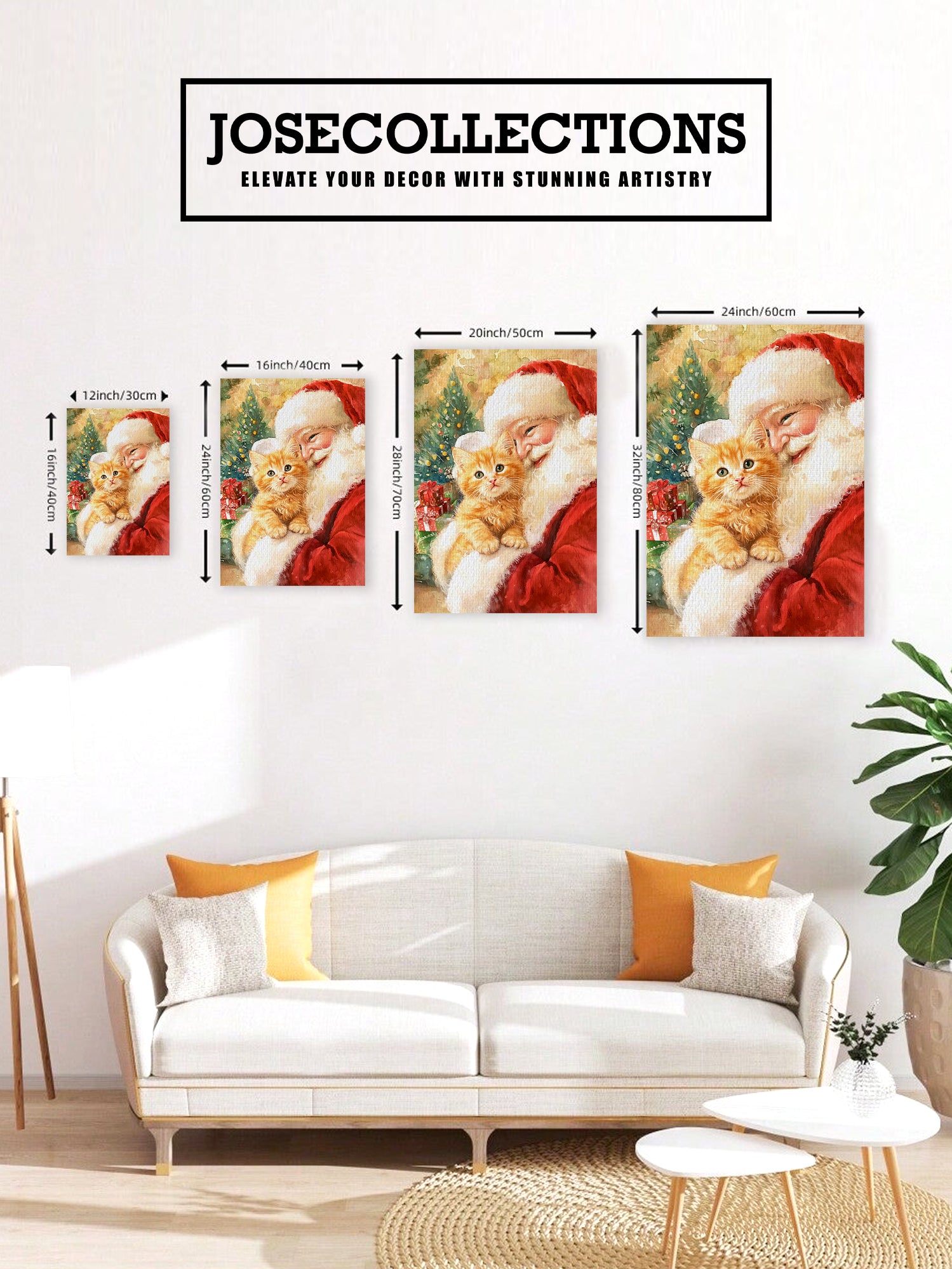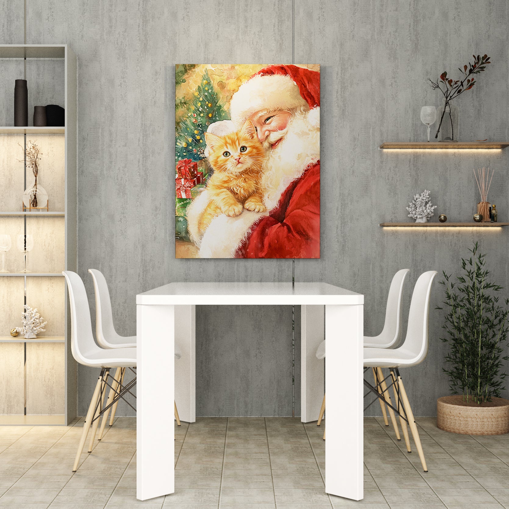 Bring festive warmth to any room with this charming Christmas canvas wall art featuring Santa and an adorable orange cat. Perfect for creating a cozy holiday atmosphere, this piece combines traditional seasonal imagery with a playful feline companion that adds personality and charm to your space. Ideal for living rooms, above sofas, or beside bedroom furniture, this canvas delivers vibrant colors and detailed artwork that captures the spirit of the season. The durable canvas construction ensures long-lasting quality, while the festive theme makes it an excellent choice for holiday decorating or year-round seasonal displays. Transform your home into a winter wonderland with this delightful addition to your decor collection.