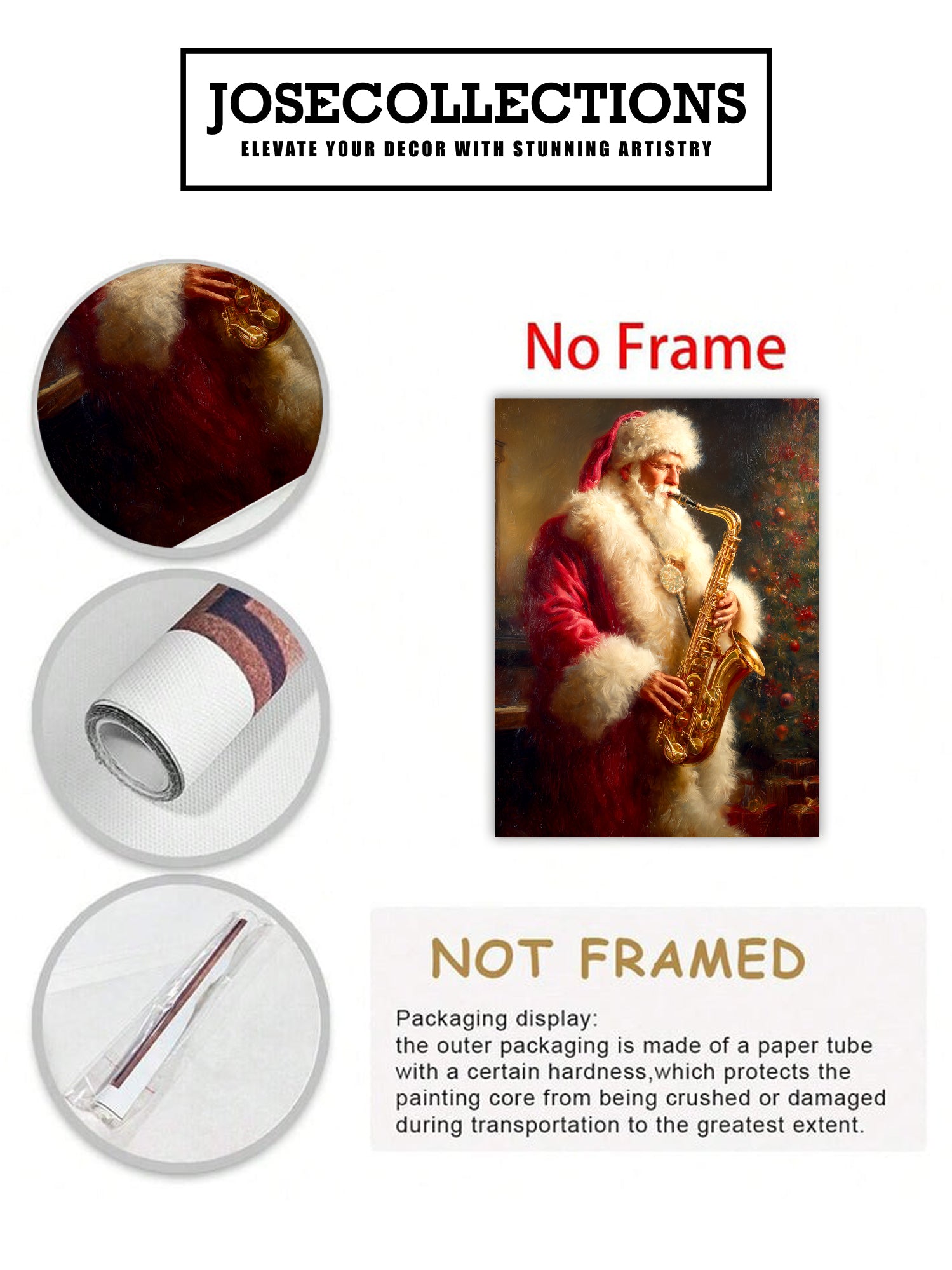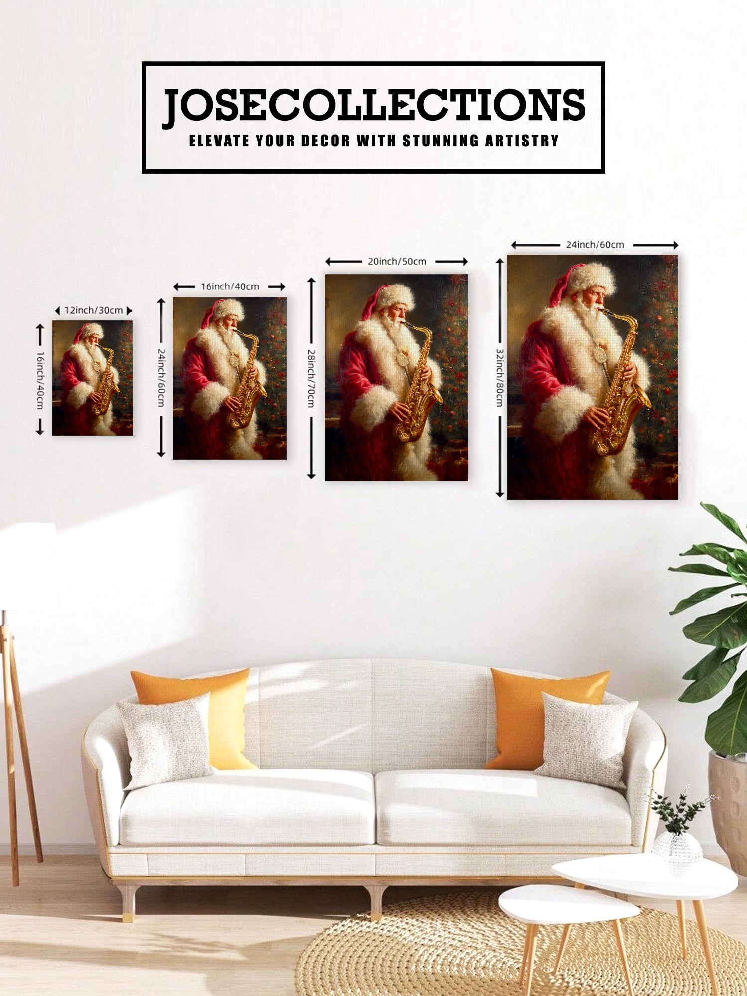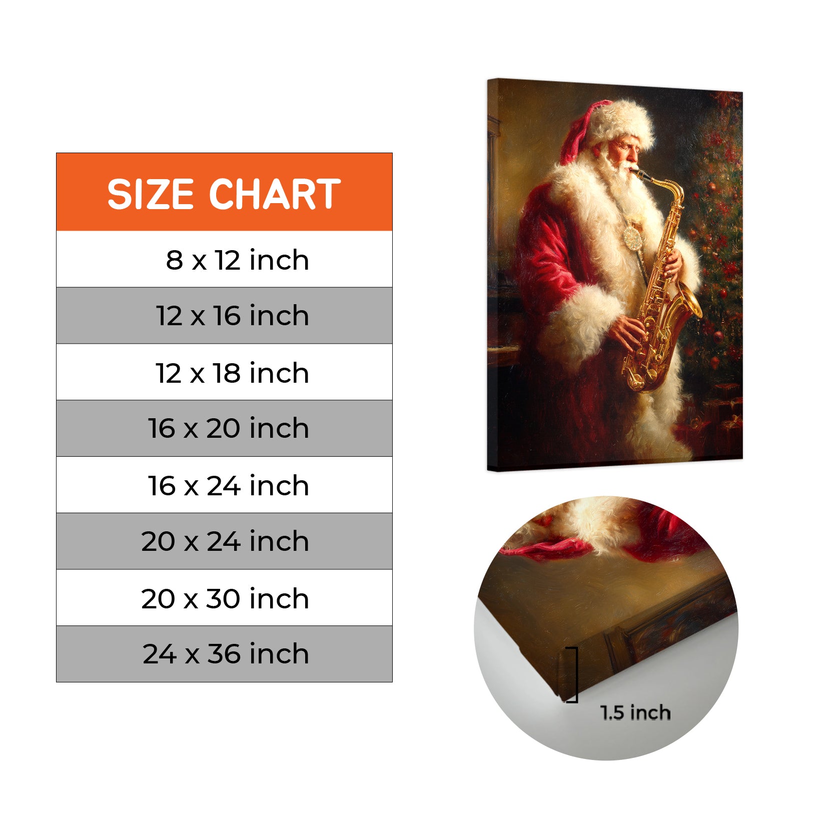 Bring festive cheer and artistic flair to any room with this charming Santa Claus Playing Saxophone canvas wall art. This whimsical piece captures a classic Christmas scene with Santa in a delightful musical moment, perfect for creating a warm, inviting atmosphere. The vibrant colors and detailed composition make it an ideal focal point above your sofa, in the living room, or beside your bed. Crafted on premium canvas, this artwork combines holiday nostalgia with contemporary home décor sensibilities. Whether you're seeking to enhance your seasonal decorations or add year-round character to your space, this piece delivers both visual interest and festive spirit to elevate your interior design.