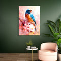Singing Bluebird Canvas Wall Art, Spring Cherry Blossom Print - For Living Room, Sofa Backdrop, Bedside Decoration, Home Decor