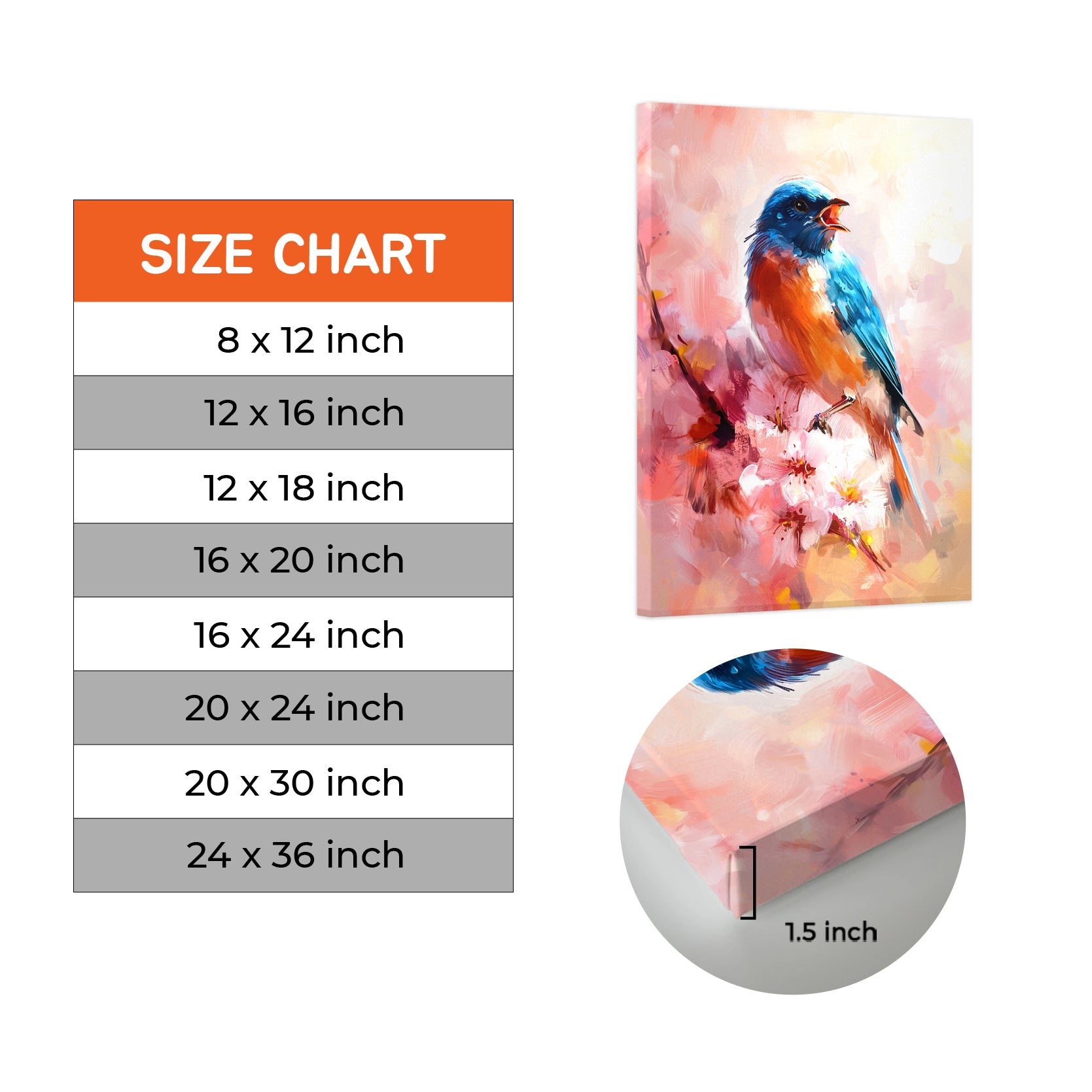 Bring serene natural beauty into your home with this captivating canvas wall art featuring a singing bluebird nestled among delicate spring cherry blossoms. The soft, harmonious composition creates a peaceful focal point perfect for living rooms, bedrooms, or above sofas. Rendered in gentle pastels and refined detail, this print captures the essence of springtime renewal and tranquility. Ideal for those seeking to elevate their interior aesthetic with nature-inspired artwork that combines artistic sophistication with timeless appeal. A versatile decorative piece that complements both contemporary and traditional home settings.