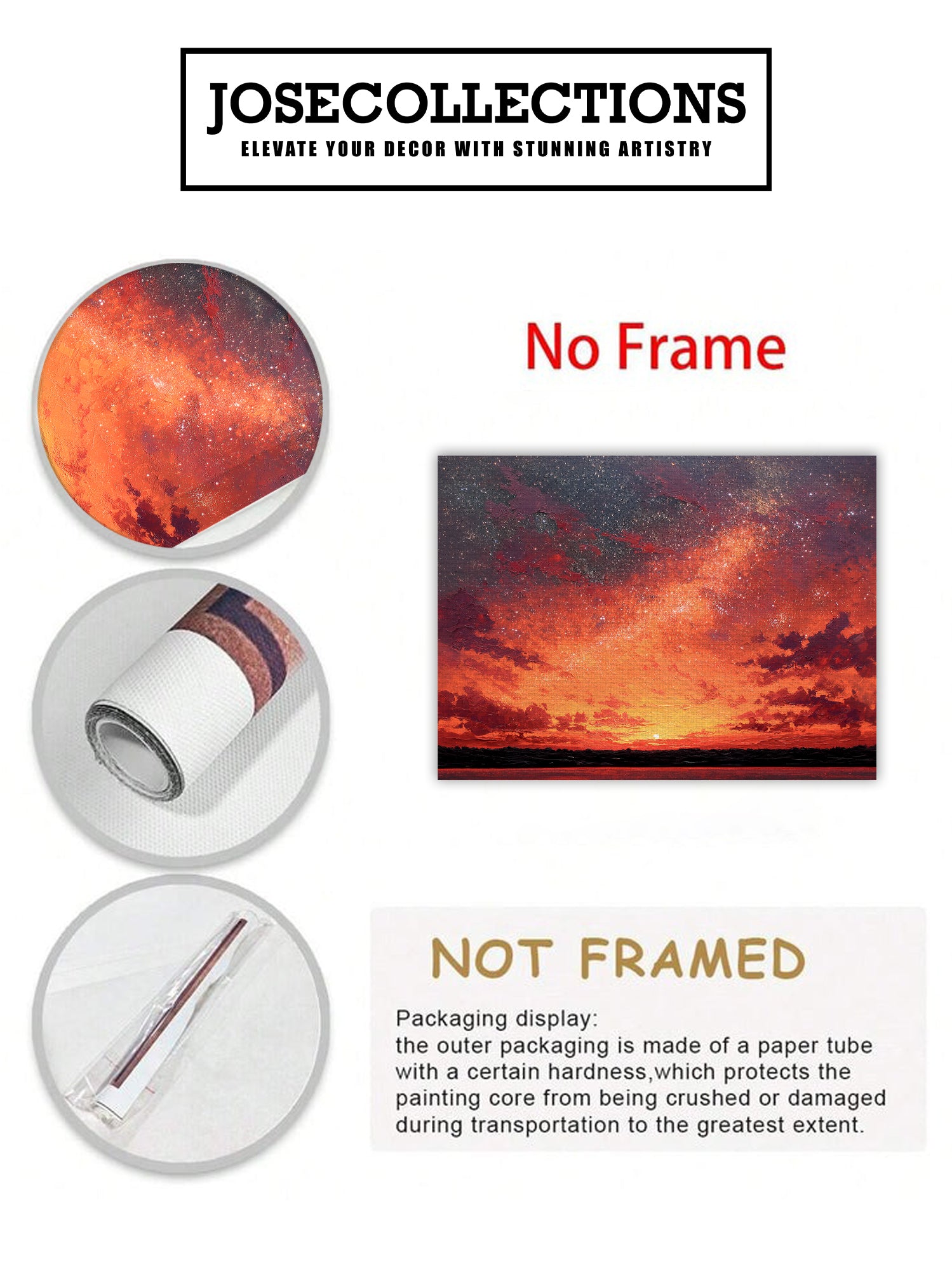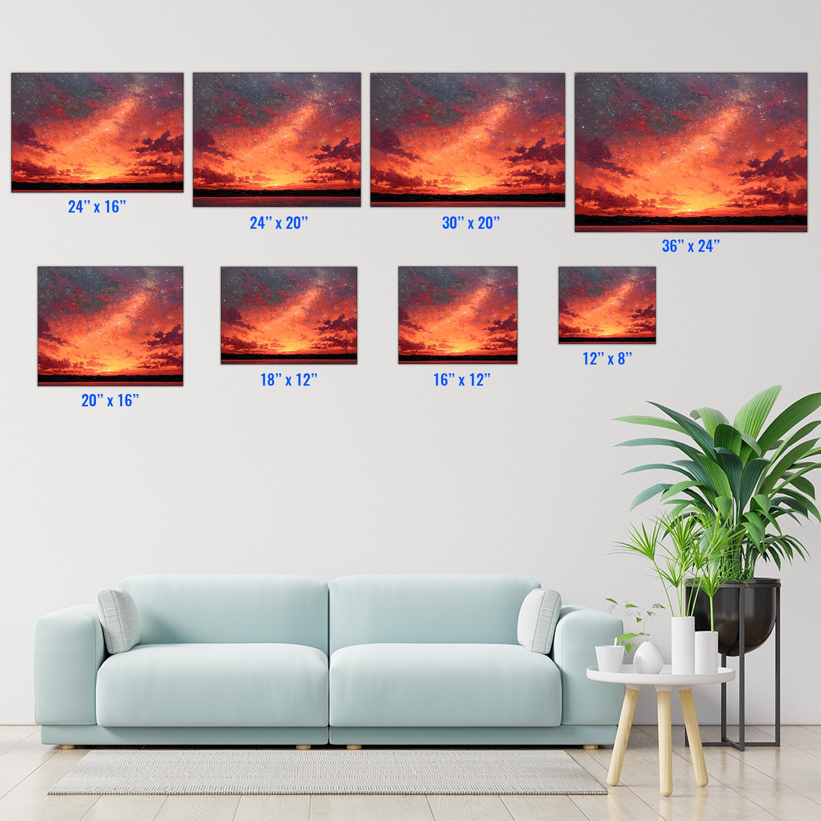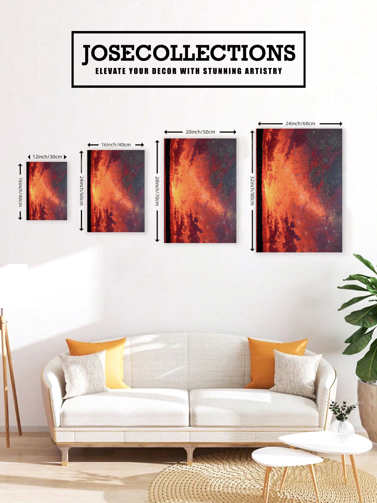Transform your space with this captivating canvas wall art featuring a mesmerizing blend of warm orange and red hues against a starry night sky. The dynamic landscape composition creates visual depth and movement, making it an ideal focal point for living rooms, bedrooms, or above sofas. This professionally rendered sunset scene brings warmth and sophistication to any interior, while the celestial elements add an artistic, contemplative quality. Perfect for those seeking to elevate their home décor with a piece that balances vibrant color with serene natural beauty. A versatile addition that complements both modern and traditional design schemes.