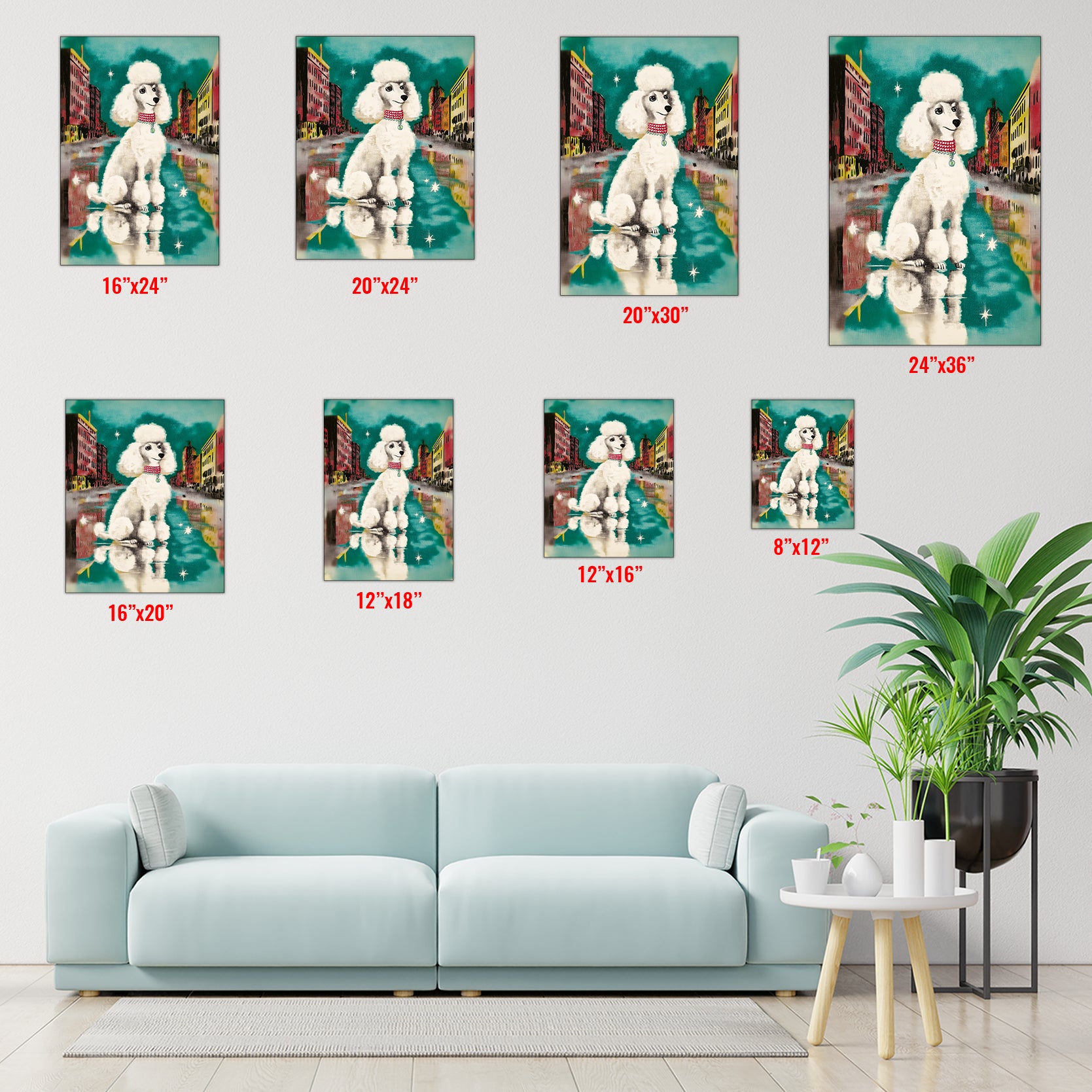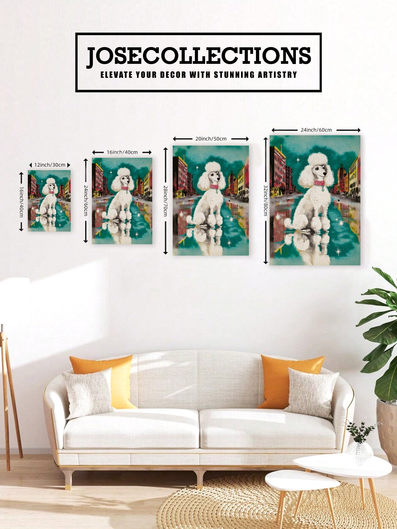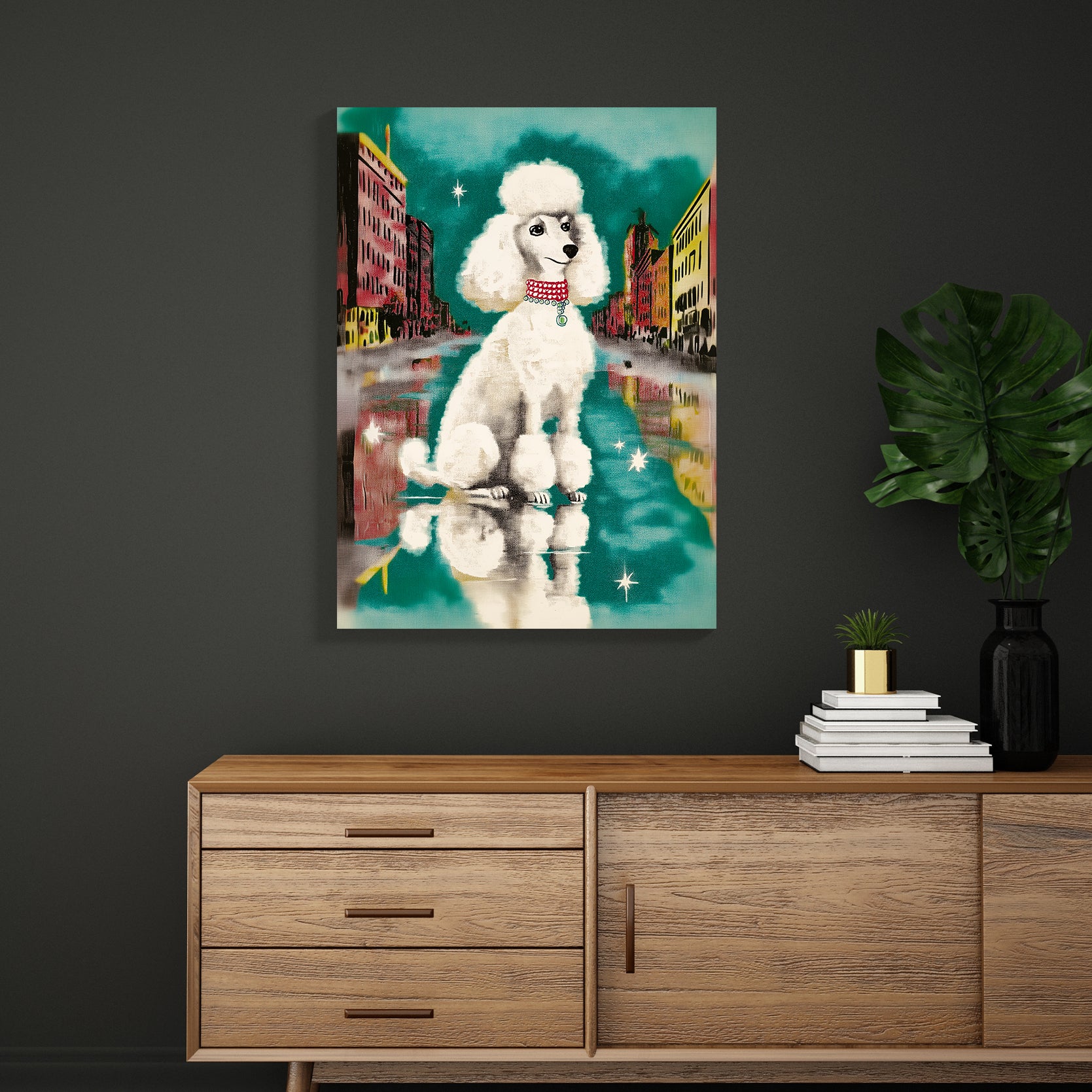 Transform your living space with this striking Urban Poodle Wall Art, a contemporary canvas print featuring an elegant white poodle set against a vibrant city street backdrop. Perfect for modern interiors, this piece brings sophistication and artistic flair to your sofa wall, bedroom, or any room seeking a refined focal point. The crisp imagery and urban aesthetic create visual interest while maintaining a refined aesthetic that complements both minimalist and eclectic décor styles. Ideal for those who appreciate fine art with personality, this canvas print delivers gallery-quality presentation without the gallery price tag.