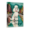 Urban Poodle Wall Art, White Dog in City Street Canvas Print - For Living Room, Sofa Backdrop, Bedside Decoration, Home Decor