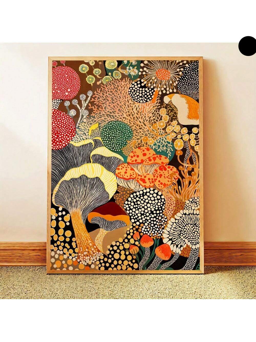 Vibrant Yayoi Kusama-Inspired Mushroom Canvas Art - Modern Abstract Wall Decor for Home and Office