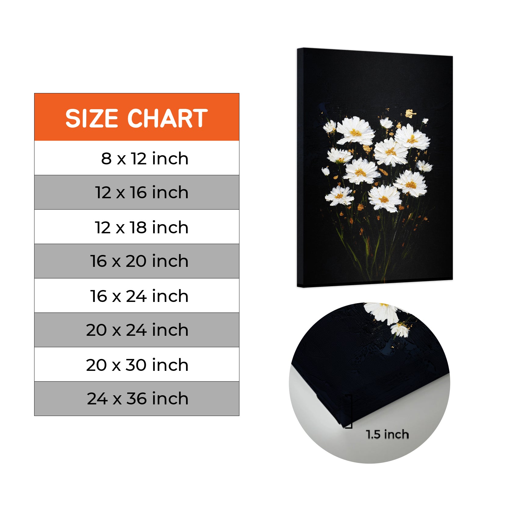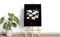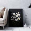 White Daisy Flowers on Black Canvas Wall Art - For Living Room, Sofa Backdrop, Bedside Decoration, Home Decor