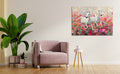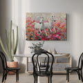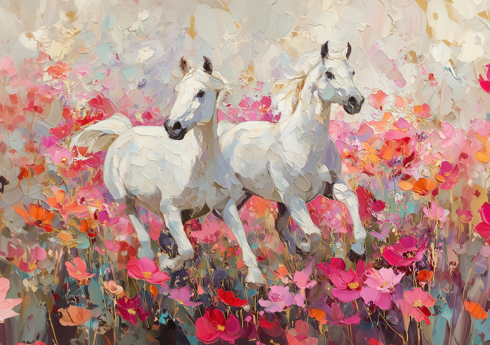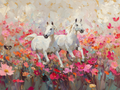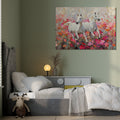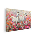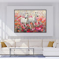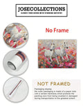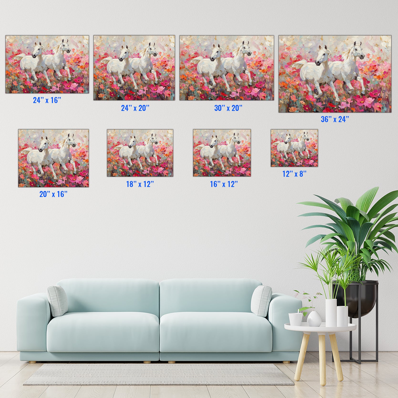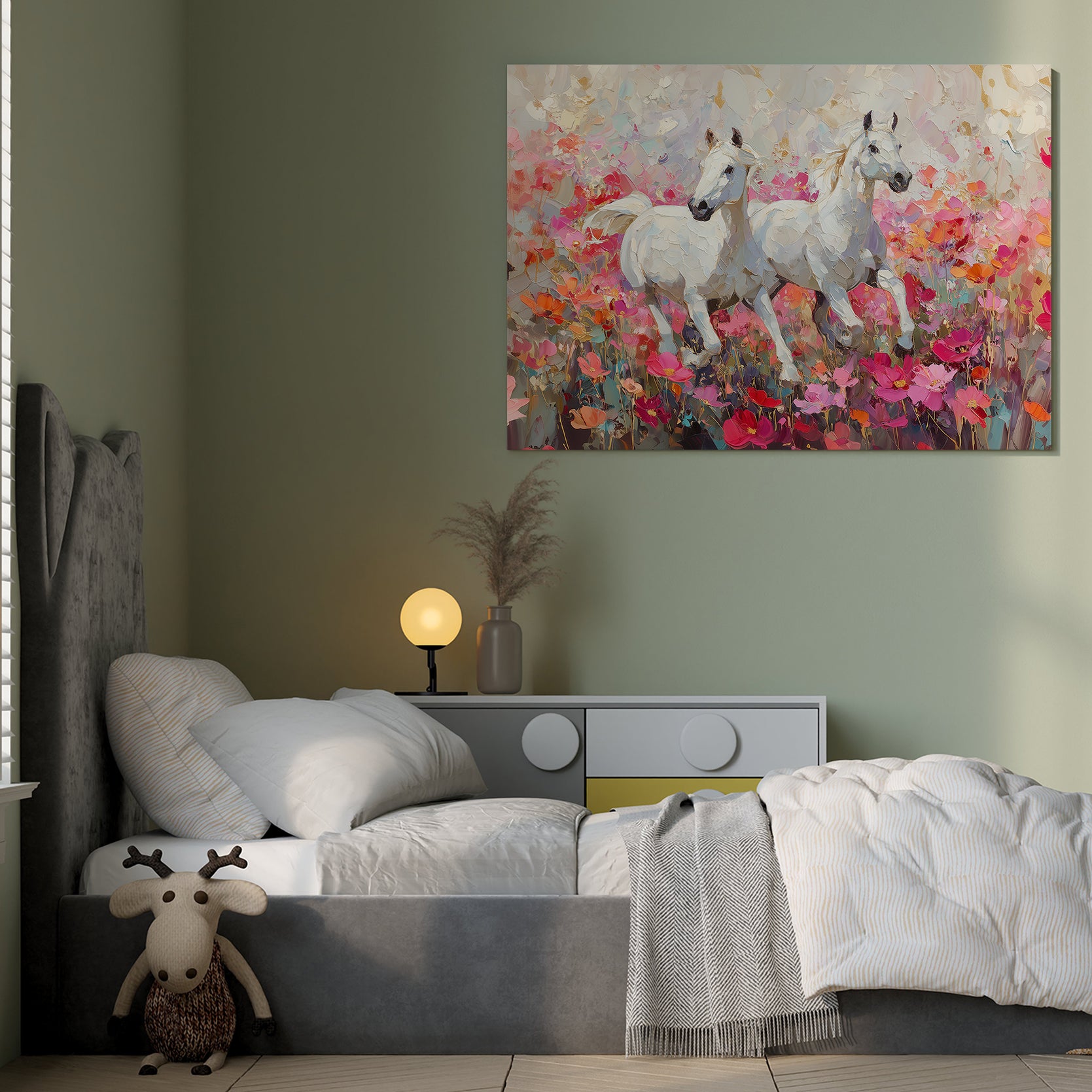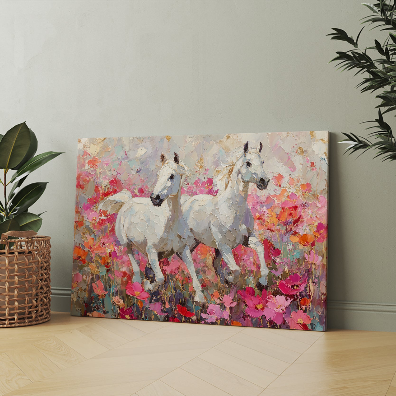 White Horses in Floral Field Canvas Wall Art, Pink Poppies Painting - For Living Room, Sofa Backdrop, Bedside Decoration, Home Decor