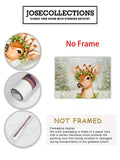 Winter Deer Canvas Wall Art, Christmas Holiday Decor with Holly Wreath and Cardinals - For Living Room, Sofa Backdrop, Bedside Decoration, Home Decor