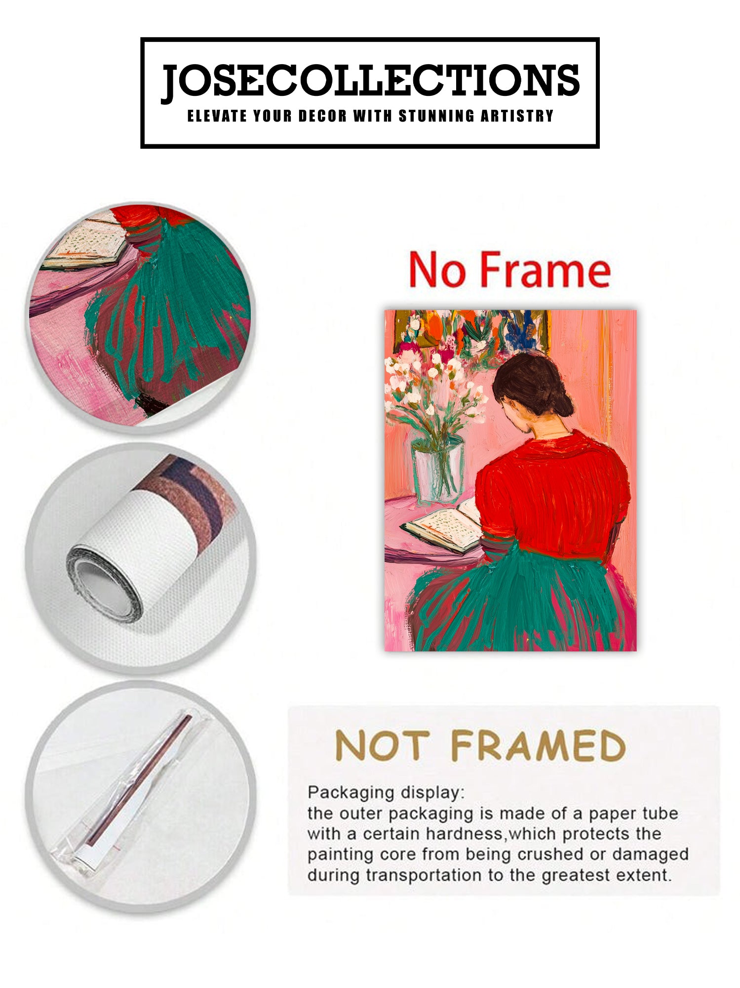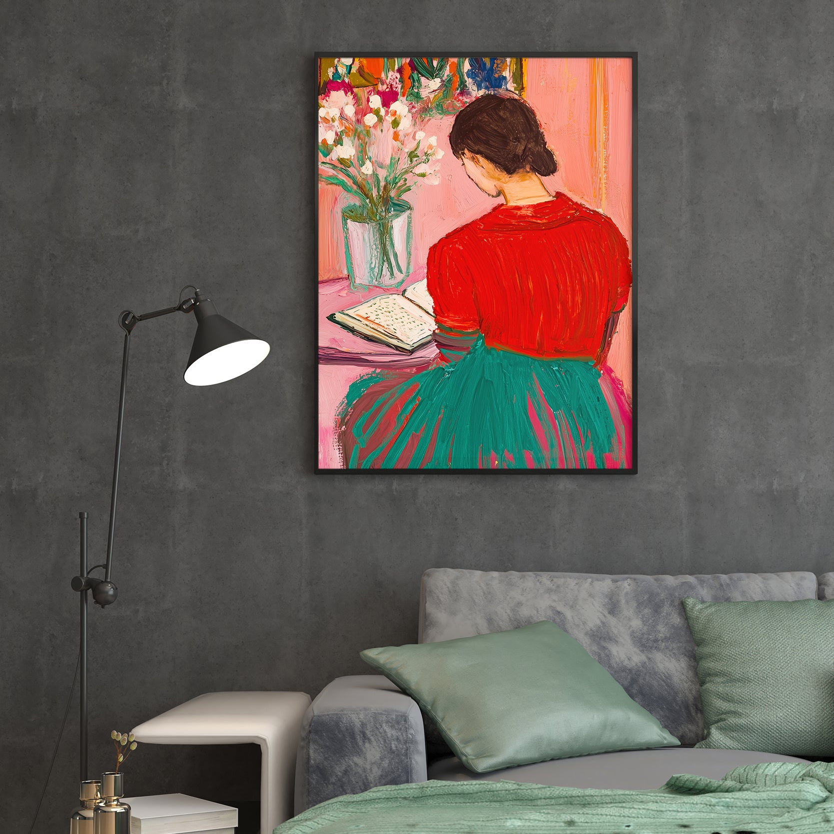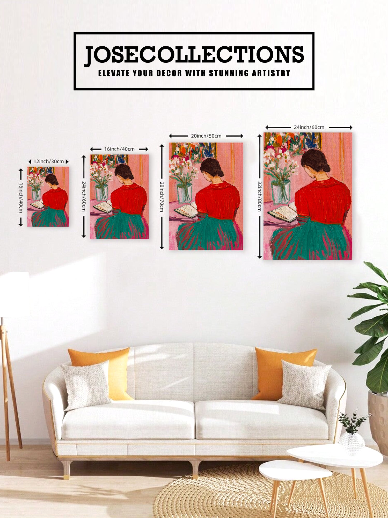 Elevate your interior with this striking canvas wall art featuring a contemplative woman reading portrait rendered in sophisticated red and pink tones. The modern artistic style brings contemporary elegance to any space, making it an ideal focal point above your sofa, in the bedroom, or throughout your home. The warm color palette creates an inviting atmosphere while the expressive brushwork adds depth and character to your walls. Perfect for those seeking to infuse their living spaces with artistic sophistication and visual interest. This versatile piece complements both modern and eclectic décor schemes, transforming ordinary walls into a gallery-worthy display.