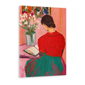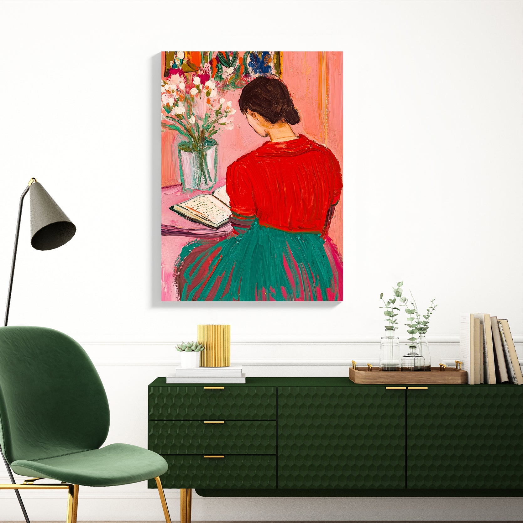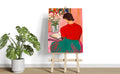 Woman Reading Portrait Canvas Wall Art, Red and Pink Modern Art Painting - For Living Room, Sofa Backdrop, Bedside Decoration, Home Decor